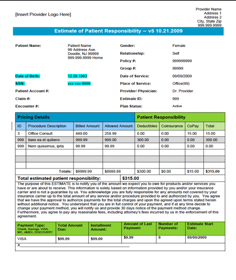 >>  Generate a patient-friendly payment agreement for your patients to sign